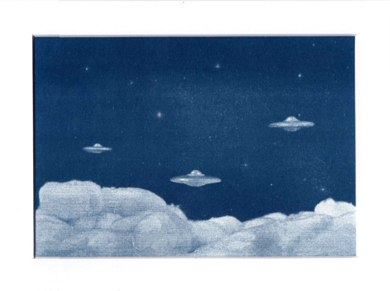 Hand Printed Cyanotype – Cottonwool Clouds – 7″ x 5″
