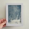 Created from a photographic negative of one of my own diorama this cyanotype has been printed on 300gsm hot press watercolour paper.  Ready to frame in an off-white mount measuring 9″ x 7″. Signed on the reverse.