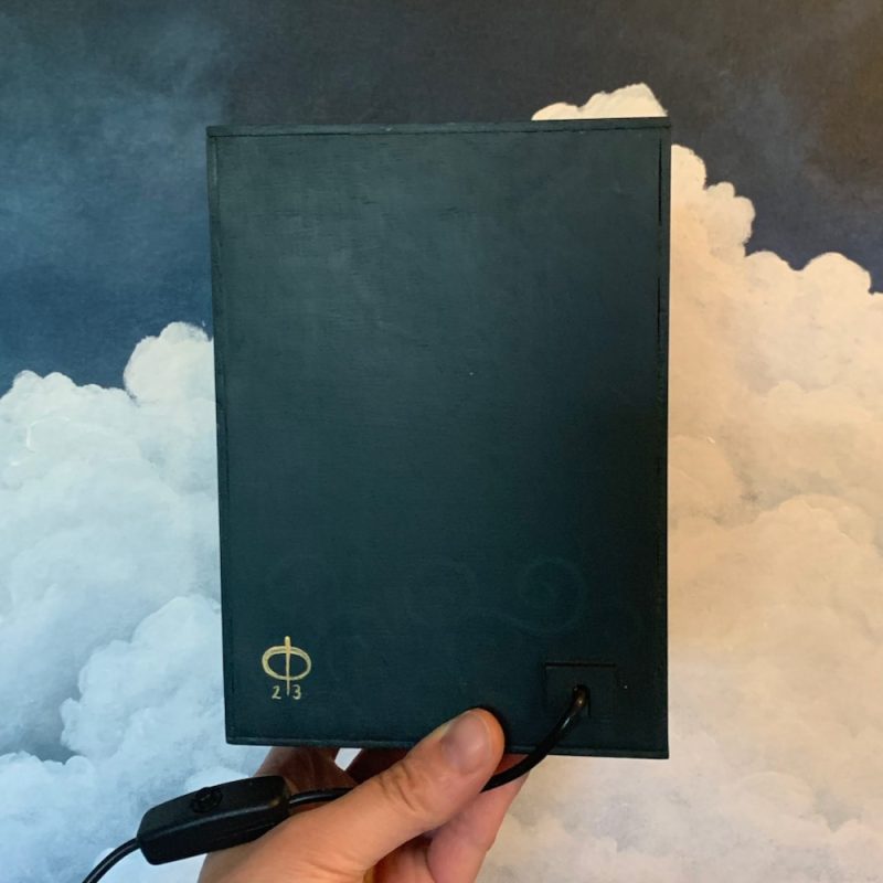 The box is powered by a magical 5v USB cable with a switch 😉 You will need either a USB plug (the kind for a phone) or a powerbank to run it. Flick the switch on the cable to power on the lights and then press the button to reveal the effect.